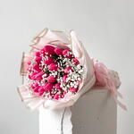 pink tulips - 31 pcs white gypsophila - 5 pcs