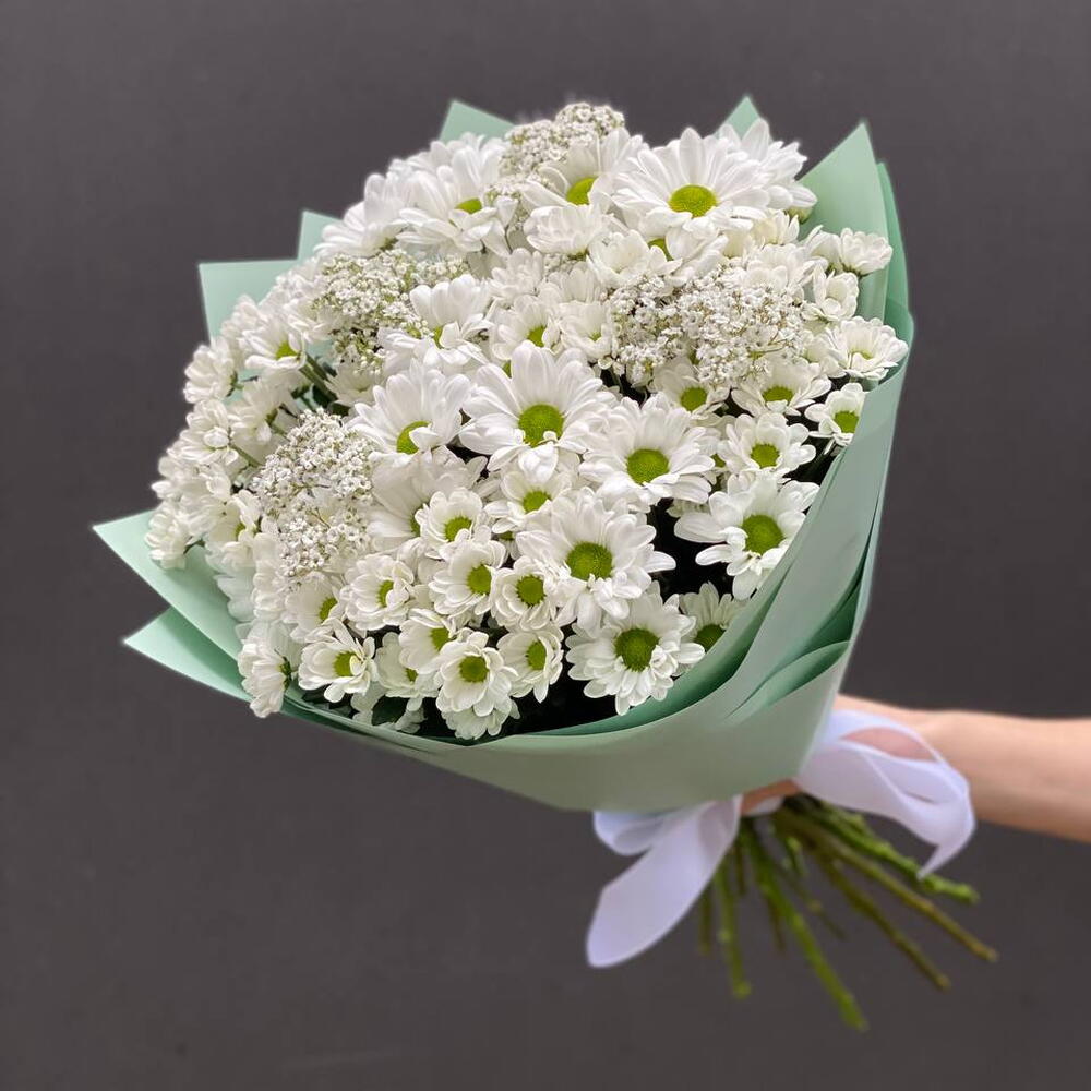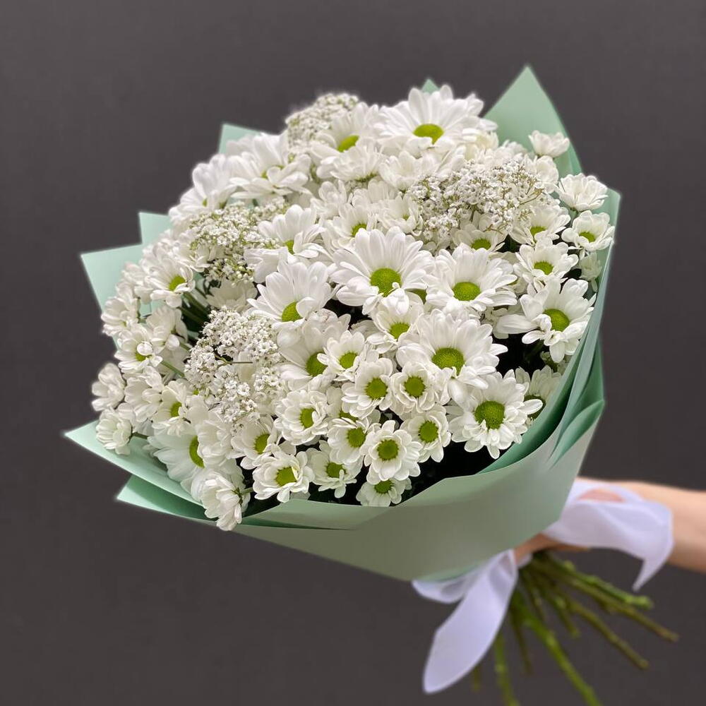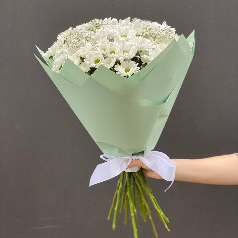 bouquet packaging - 1 pcs chrysanthemumchlik - 5 pcs chrysanthemum "santini" - 7 pcs flower "gypsophila" - 3 pcs
