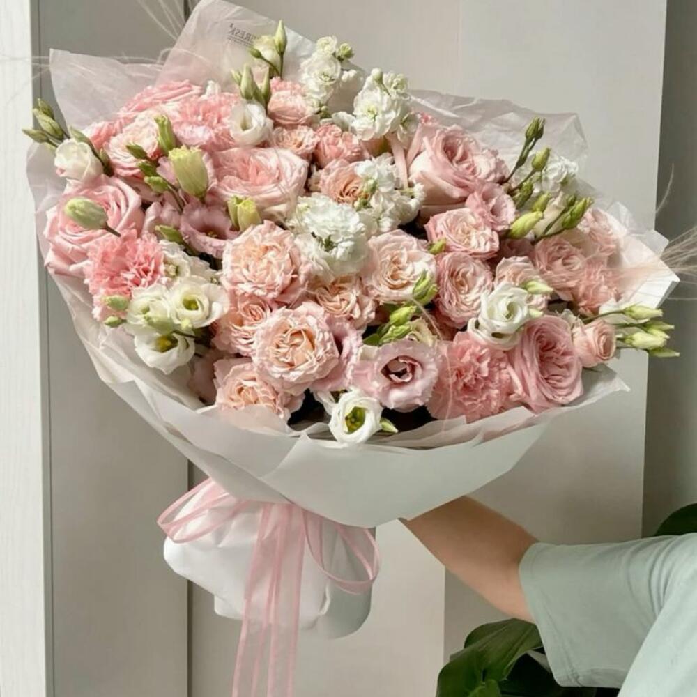Fresh, light bouquet with the charm of the morning. Due to the seasonality of some flowers and additions, the bouquet may slightly differ from the one shown in the picture.