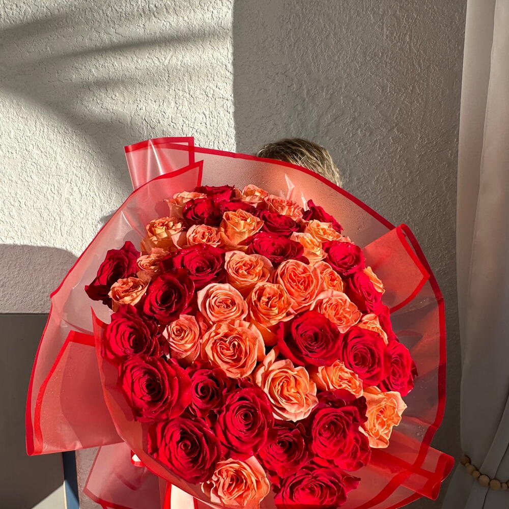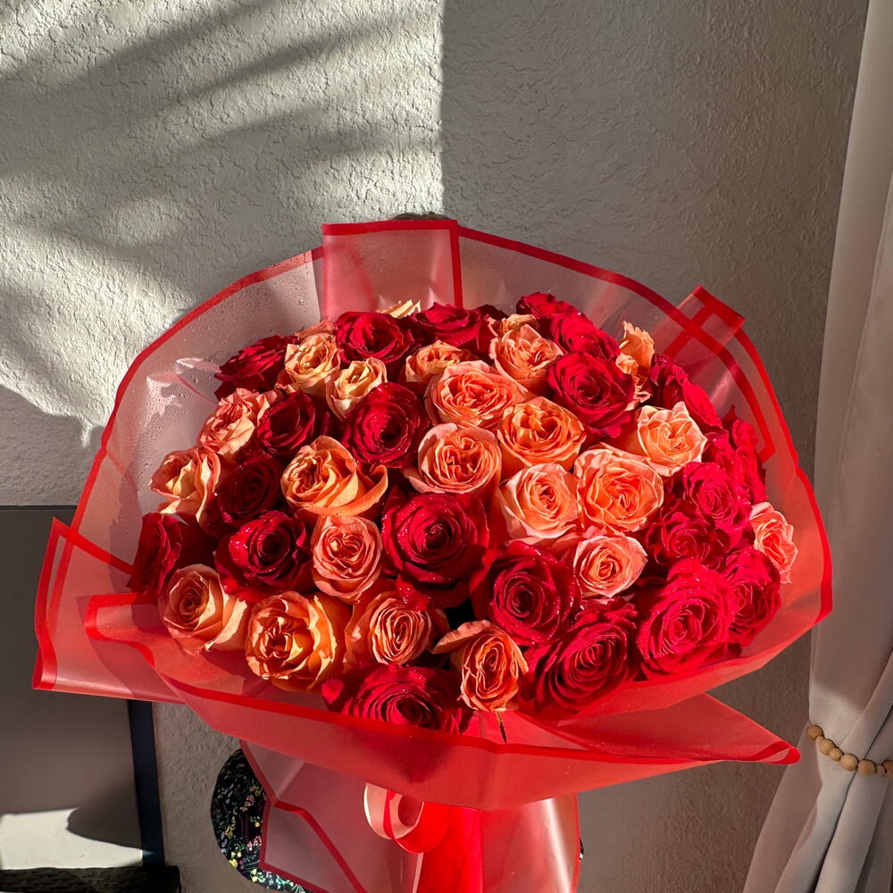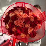 Premium orange garden roses and red roses 48-52 pieces