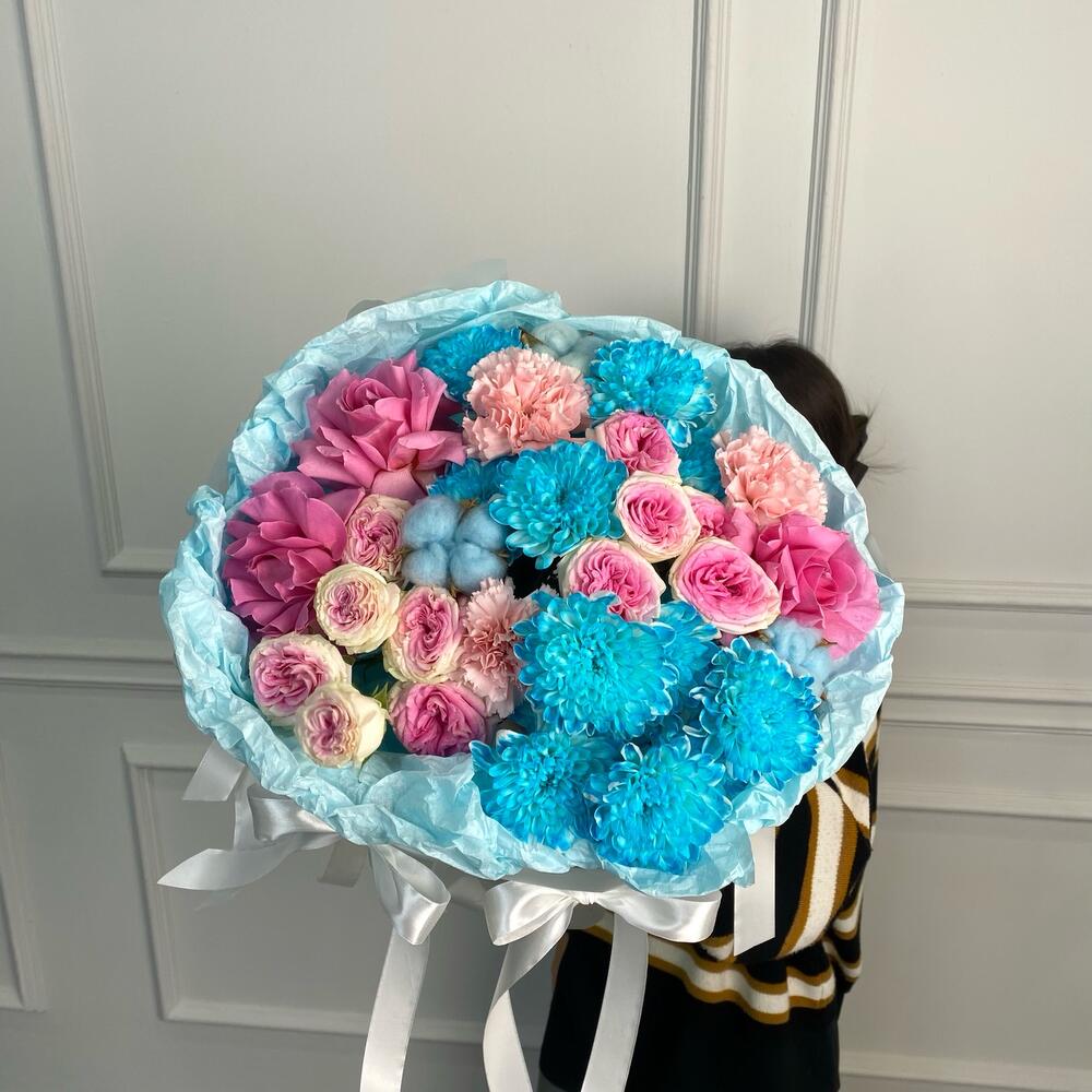Spray rose - 5 pcs diantus - 3 pcs roos hollahd - 3 pcs kruzanteem - 3 pcs foumeran - 1 pcs