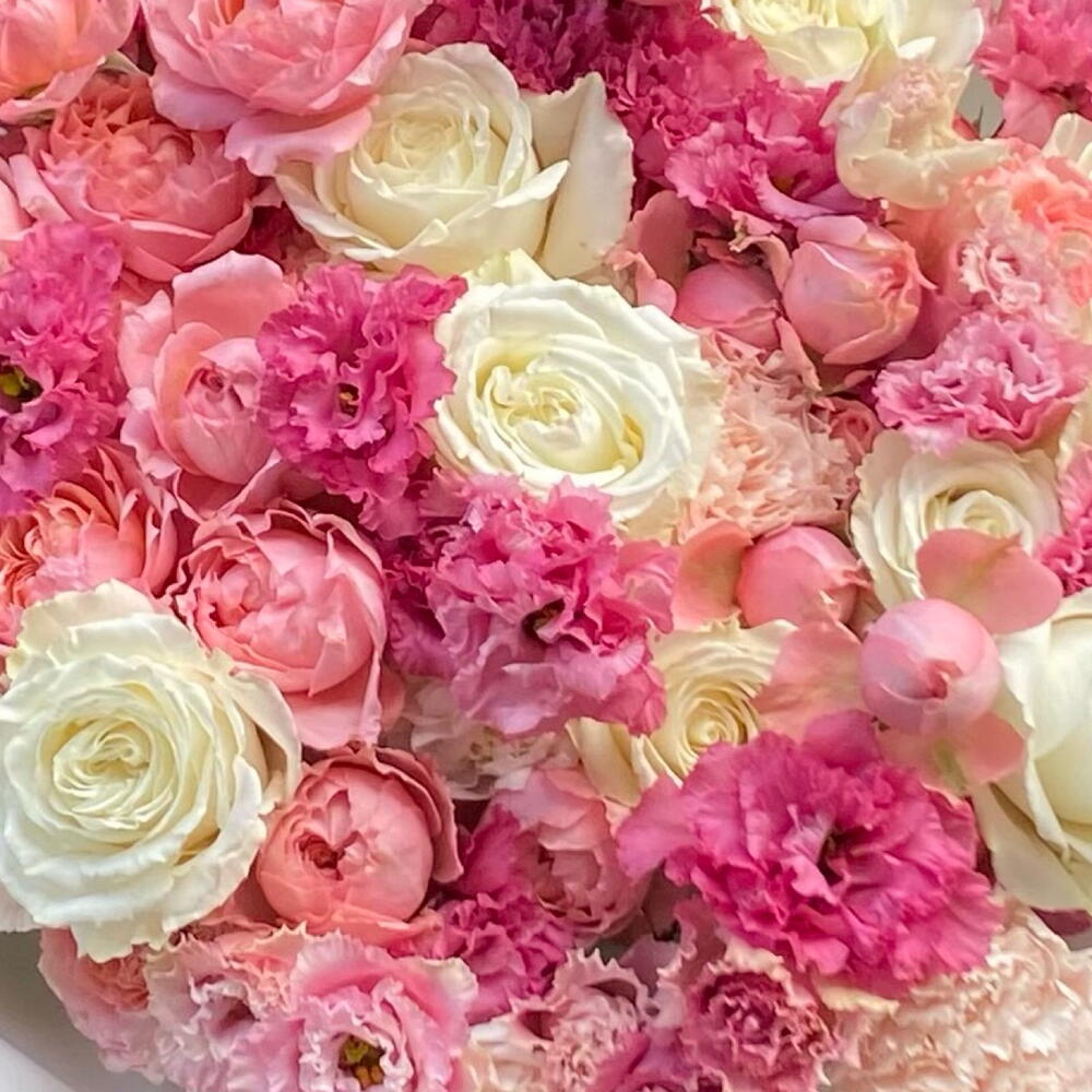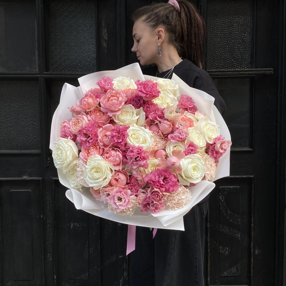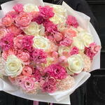 Eustoma - 8 pcs rose - 14 pcs dianthus - 10 pcs packaging design - 5 pcs chrysanthemum - 4 pcs spray roses - 6 pcs