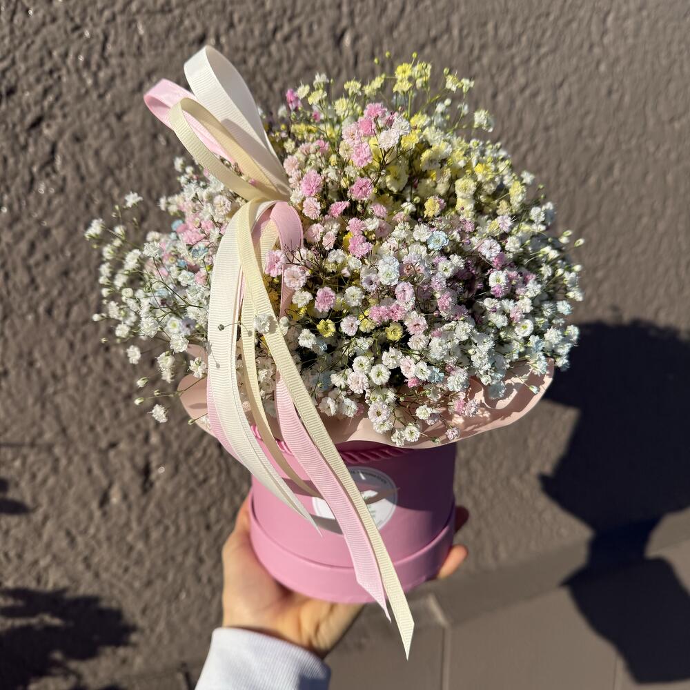box - 1 pcs gypsophila - 5 pcs floral foam - 1 pcs