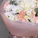 Eustoma white - 3 pcs daisies - 4 pcs carnation - 4 pcs astromeria - 3 pcs brush roses - 1 pcs