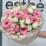 Gerbera - 7 pcs dianthus - 8 pcs rose - 8 pcs spray rose - 9 pcs