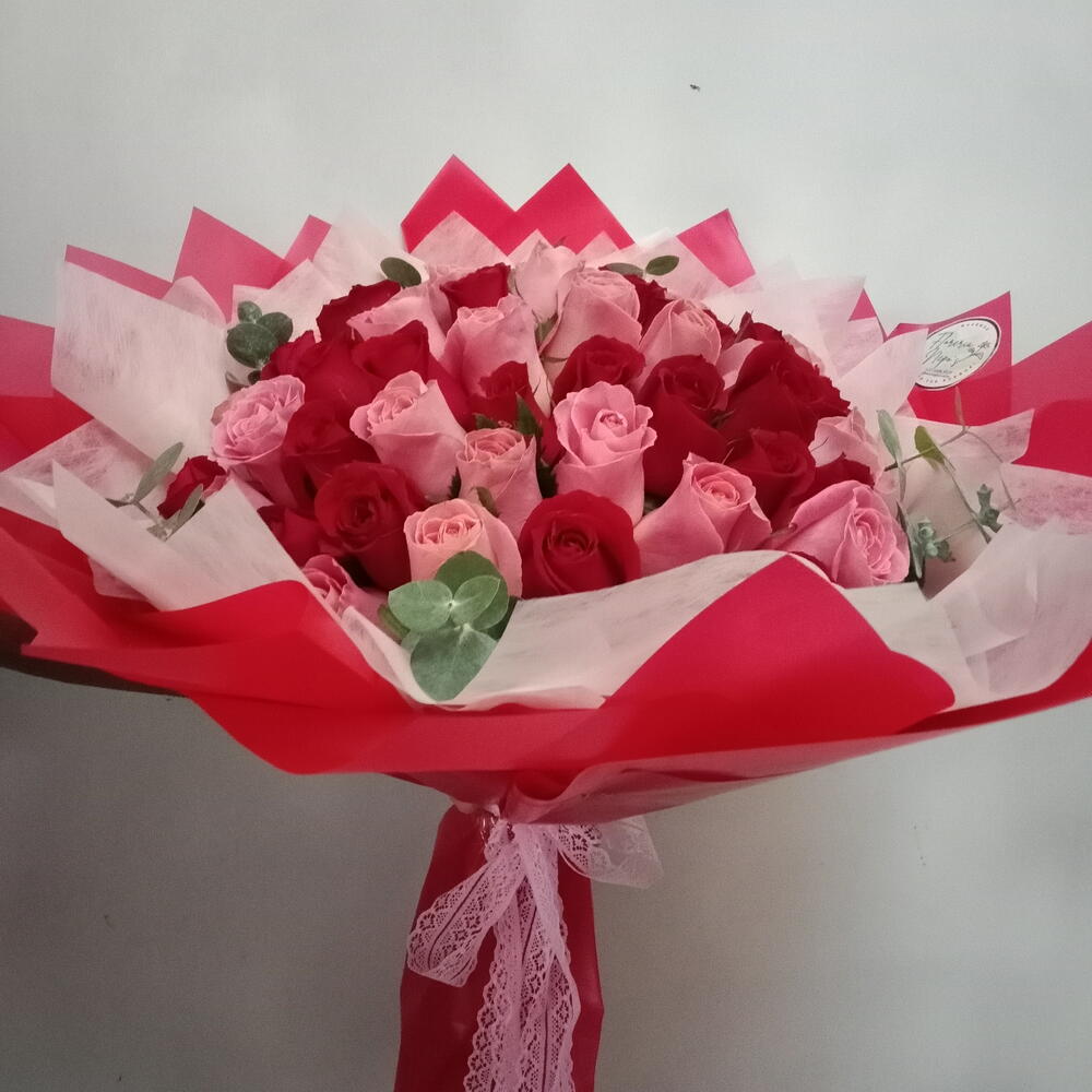 rosa roja - 25 pcs dólar eucalipto - 6 pcs rosa hermosa (rosa) - 25 pcs