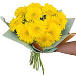 Ramo de 12 gerberas de color amarillas con papel coreano. Ideal para regalar en cualquier ocasión.