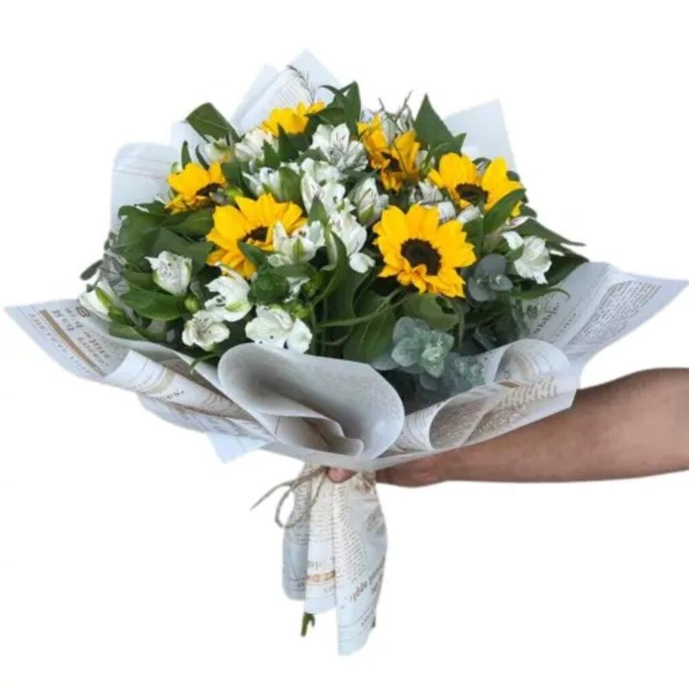 RAMO DE FLORES GIRASOLES Y ASTROMELIAS CON PAPEL COREANO