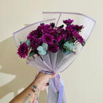 Un diseño elegante y lleno de personalidad en tono fiusha que transmiten admiración, fuerza y cariño. Acompañado de eucalipto y envuelto en presentación moderna en tono lila, es perfecto para sorprender con estilo. Ideal para cumpleaños, agradecimientos, aniversarios o para decir “estoy pensando en ti” de una manera especial 💖