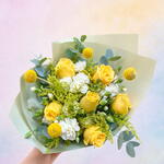 Ramo Promesa Amarilla | Rosa Amarilla, Clavelina Blanca y Craspedia