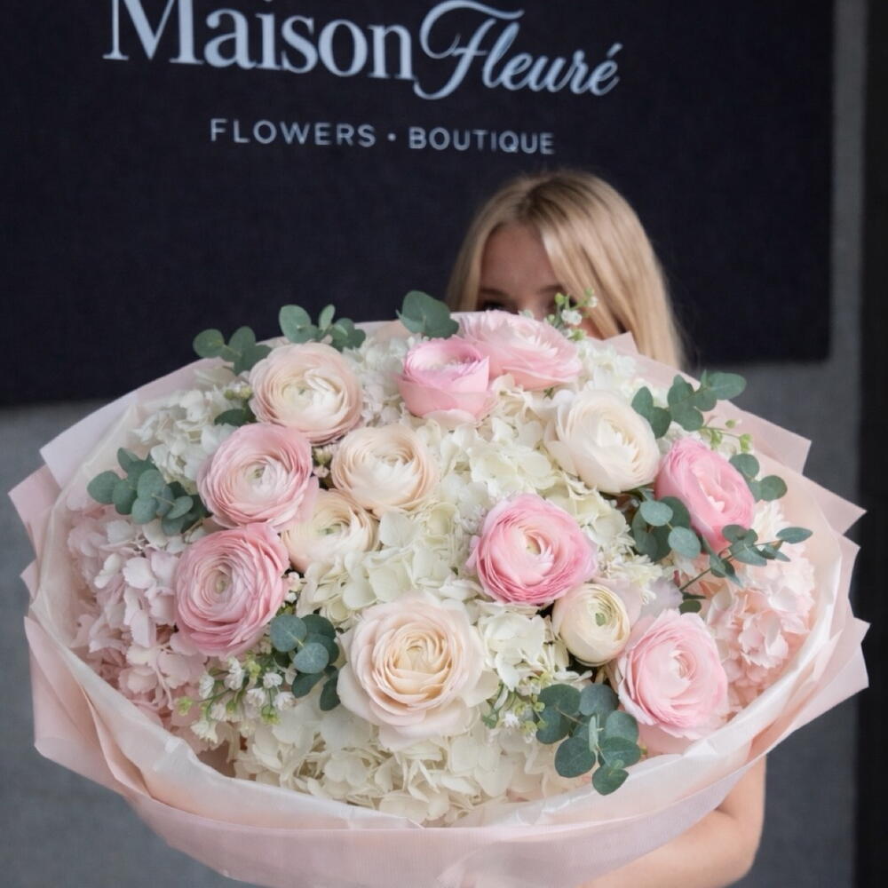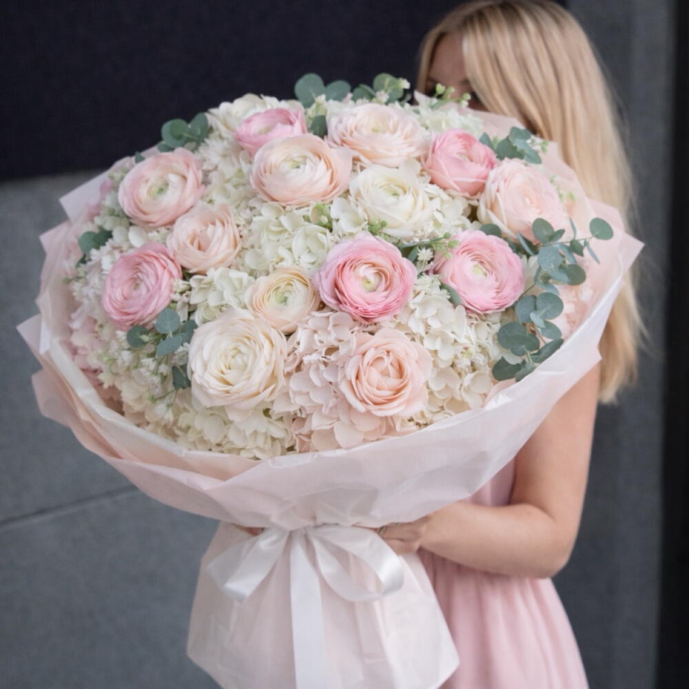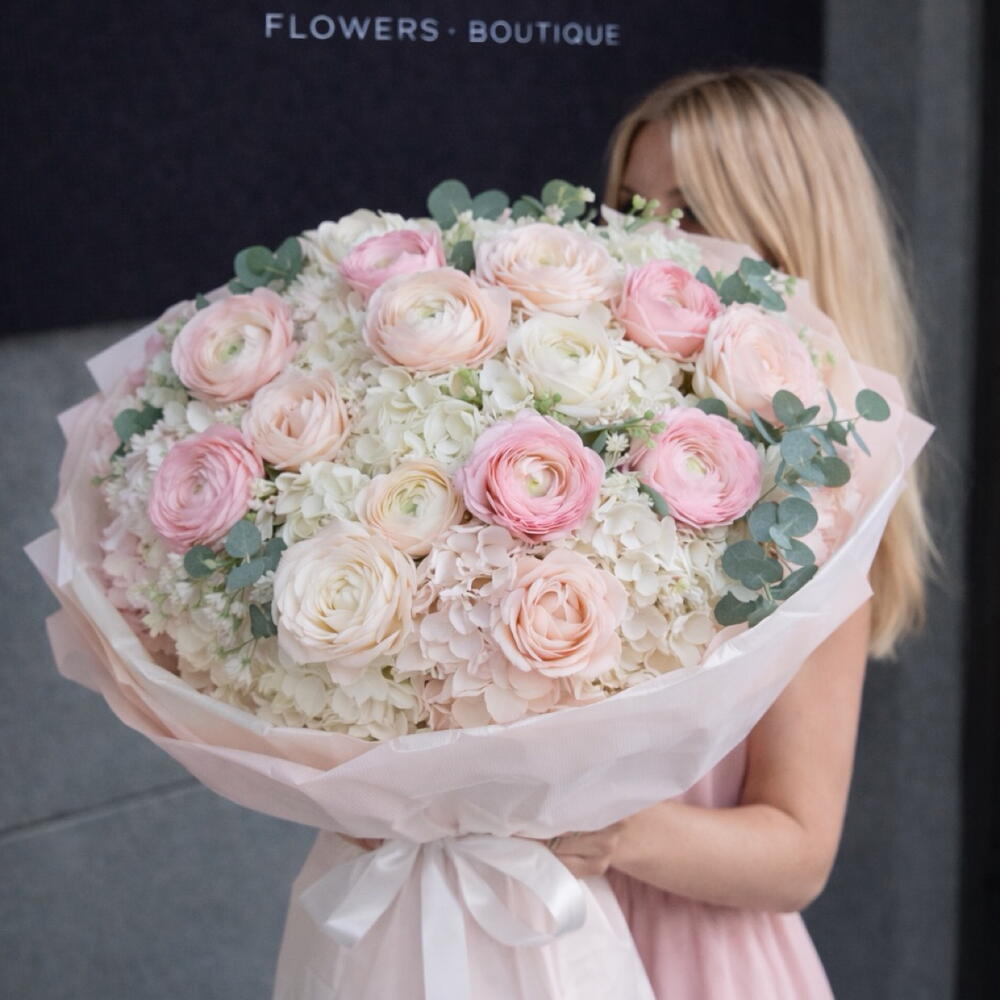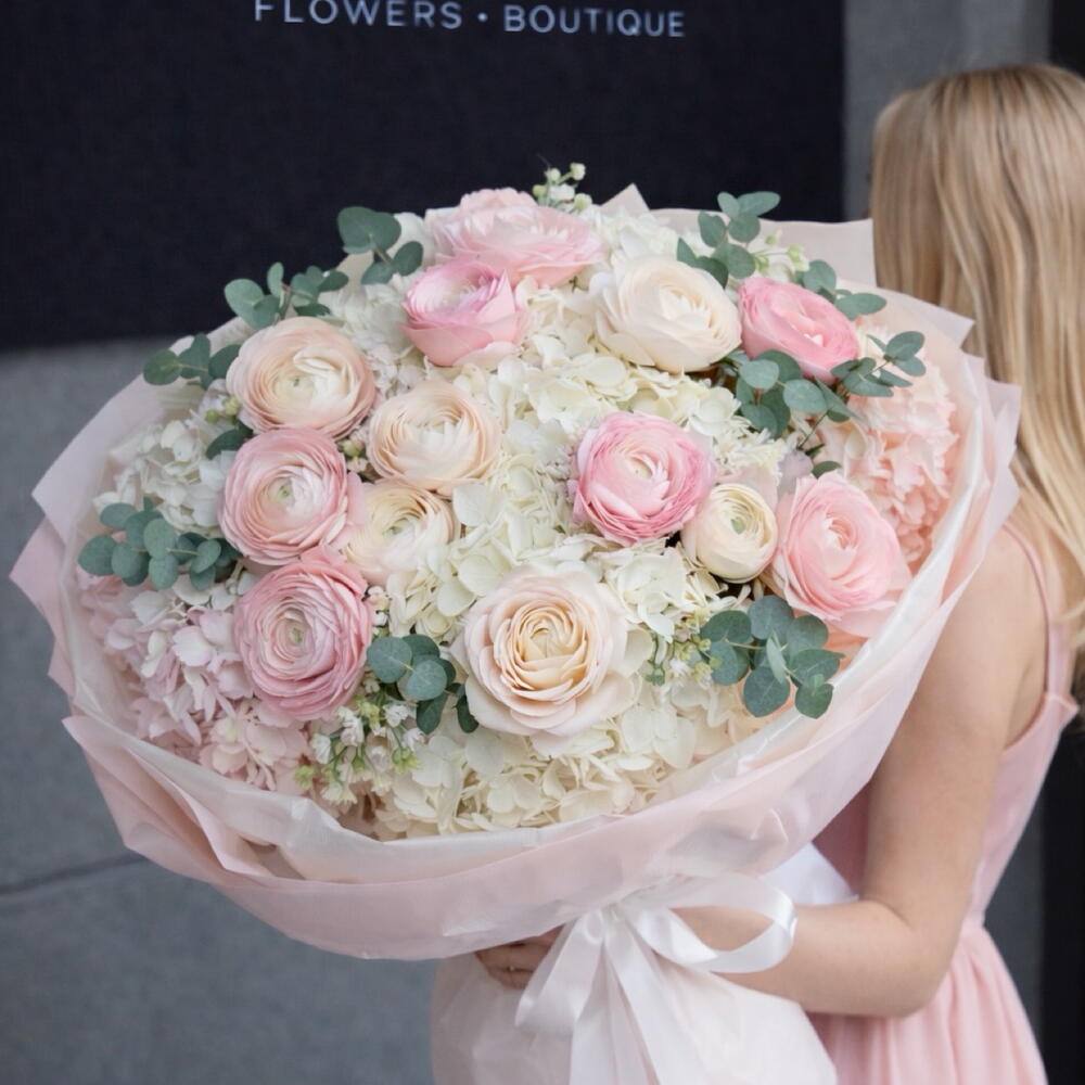Eucalyptus - 12 pcs hydrangea - 9 pcs ranunculus - 19 pcs