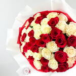 Red and white roses bouquet 51pcs