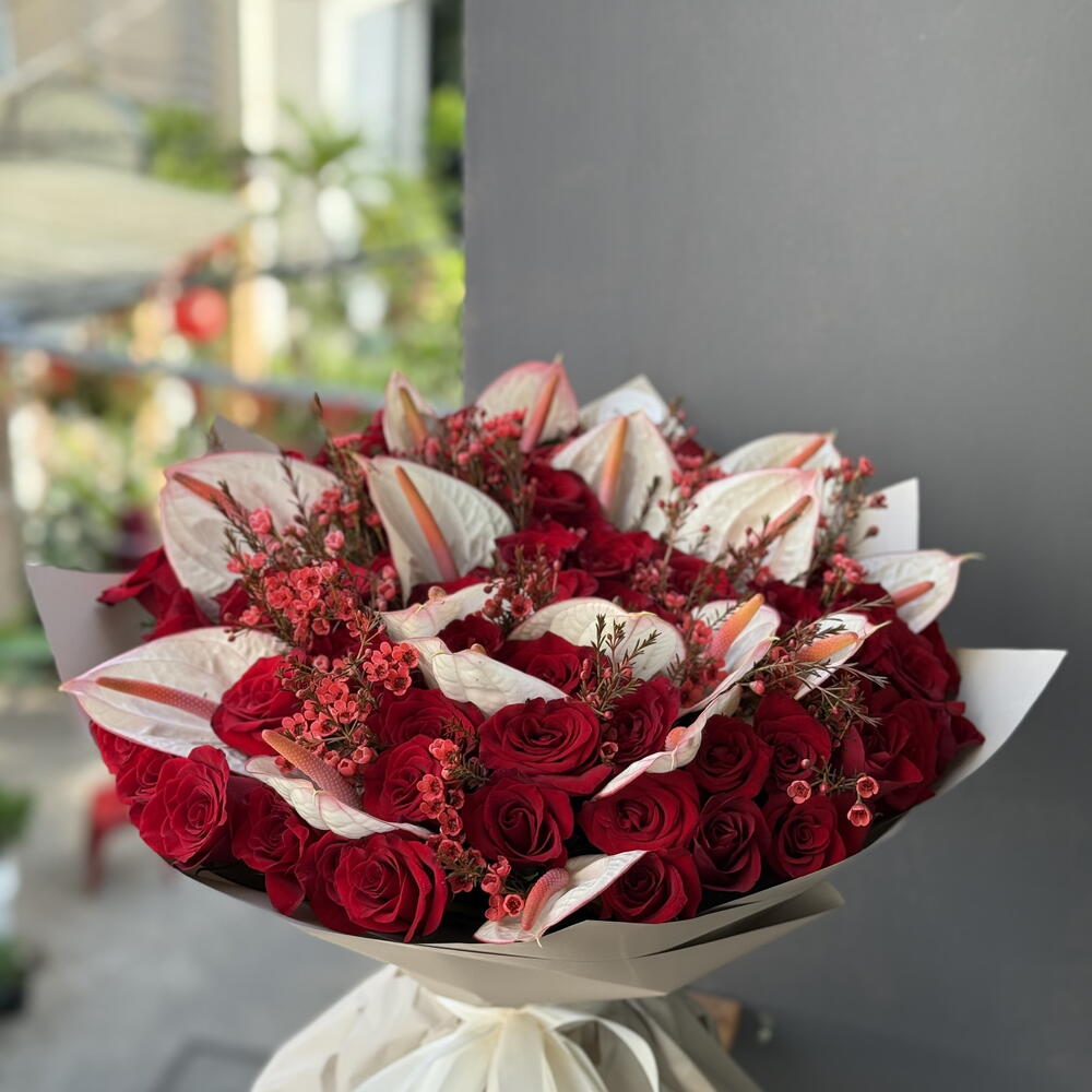 Anthurium - 15 pcs rose - 75 pcs chamelacium - 10 pcs