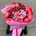 tulip - 15 pcs astromeria - 4 pcs gypsophila - 1 pcs decorative paper - 1 pcs