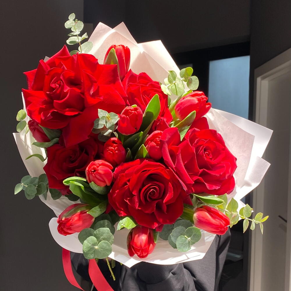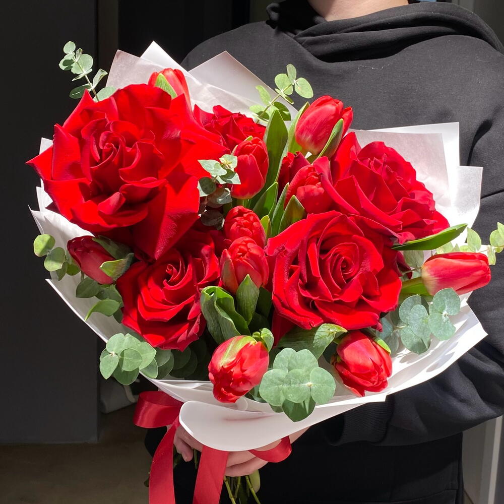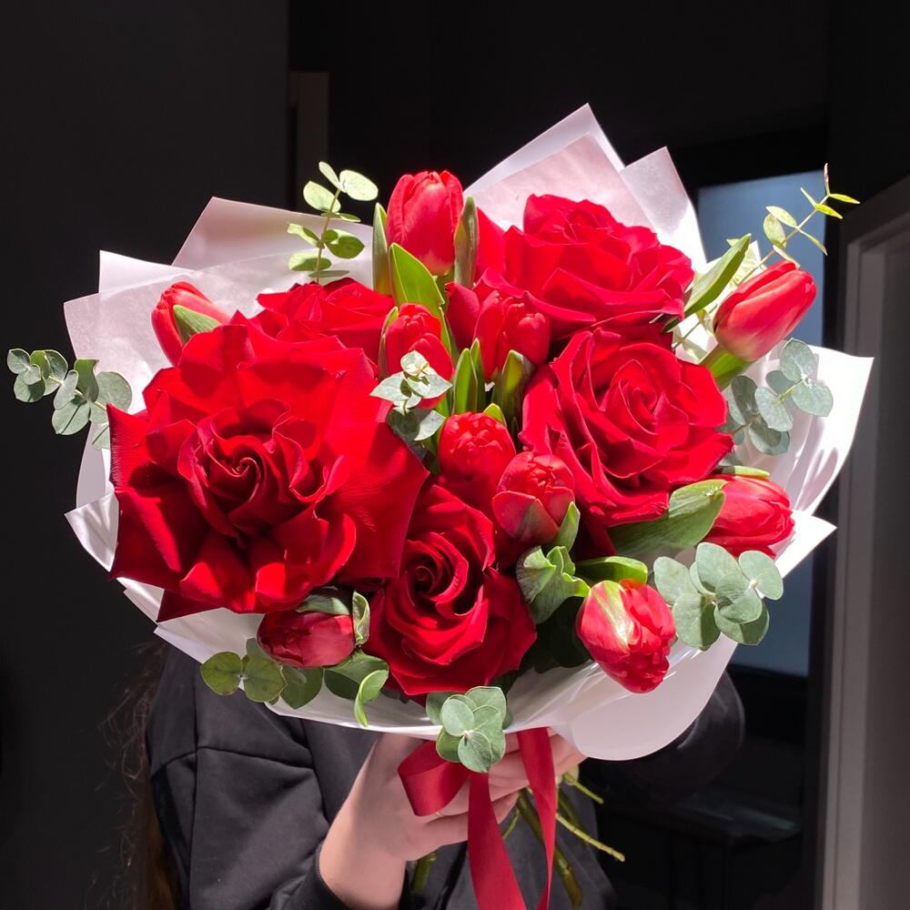 Tulips - 10 pcs Ecuadorian rose - 5 pcs packaging design - 3 pcs