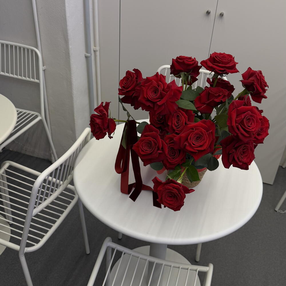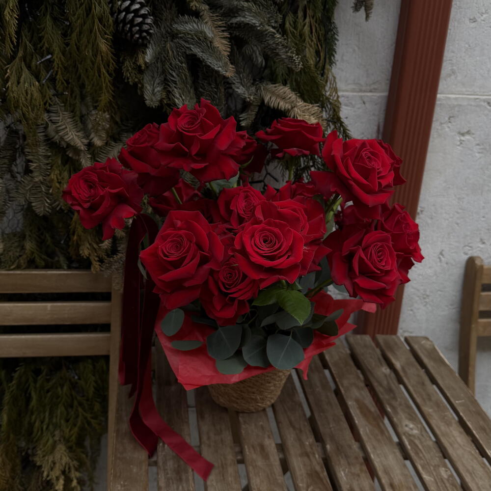 Red rose - 25 pcs Eucalyptus - 5 pcs