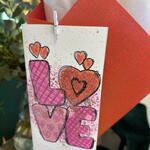 Eucalyptus - 3 pcs Ruscus - 2 pcs radiant red roses - 5 pcs heart hand made - 1 pcs postcard hand made - 1 pcs