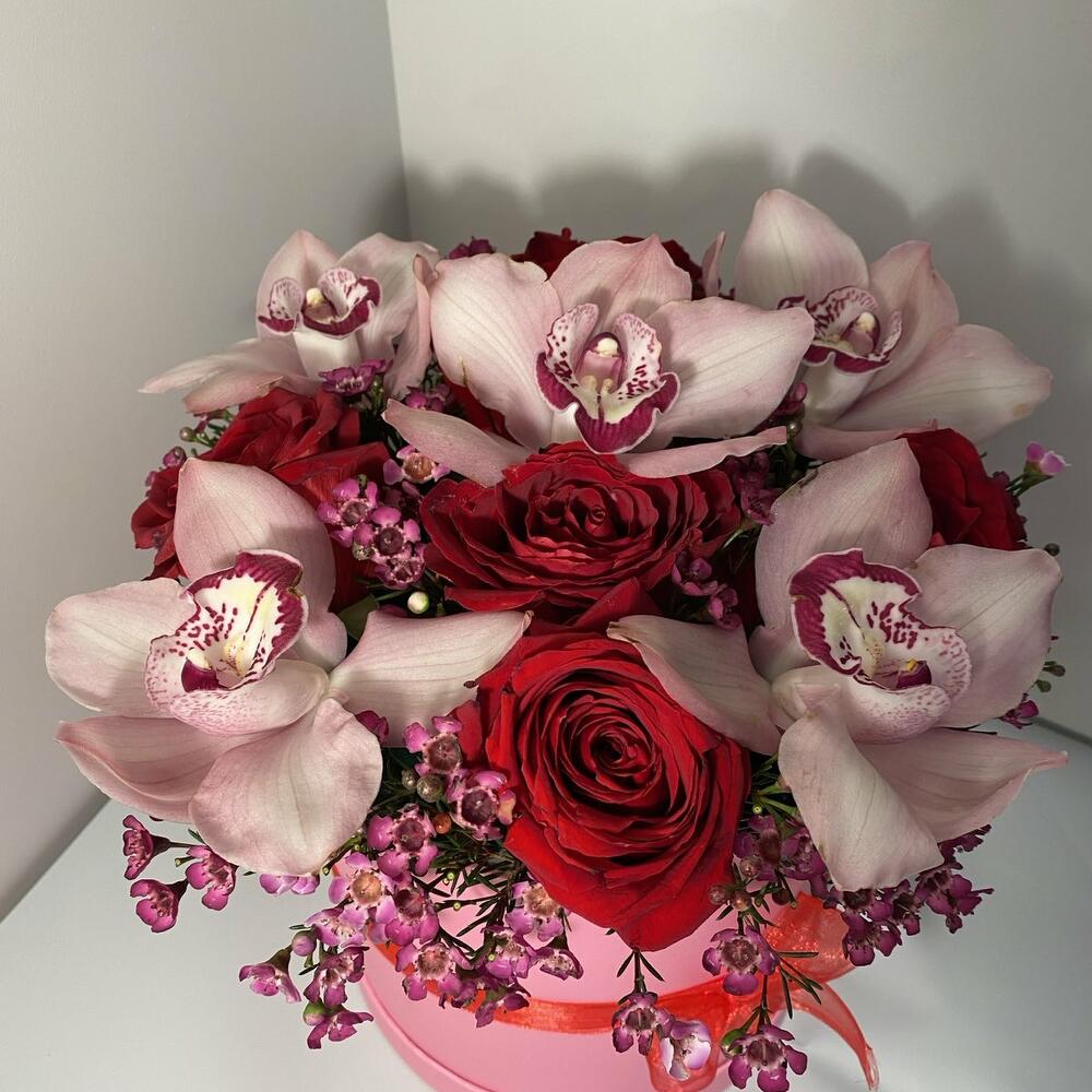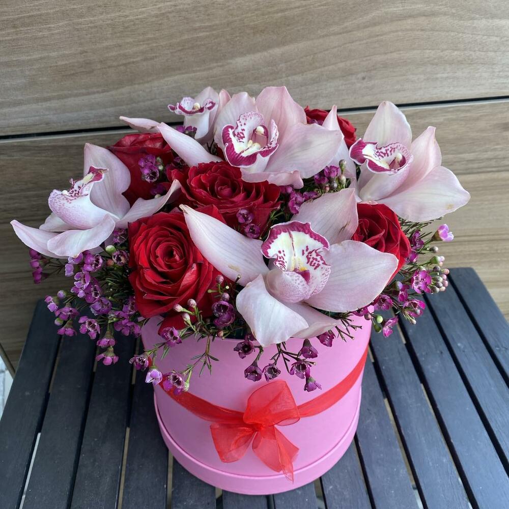 Box - 1 pcs Orchid - 5 pcs wax - 2 pcs roses - 6 pcs