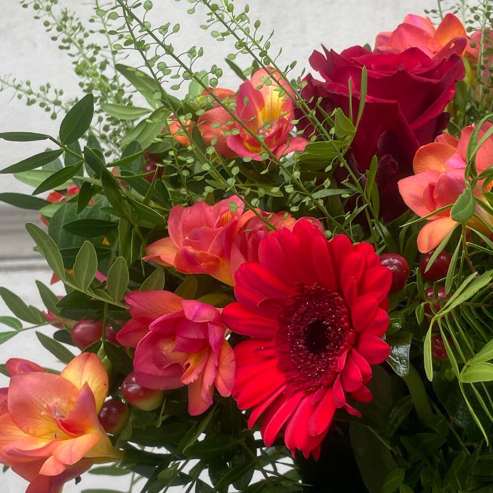Red roses germinas fresias
