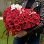orchids - 5 pcs heart box - 1 pcs butterfly - 2 pcs roses - 50 pcs
