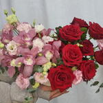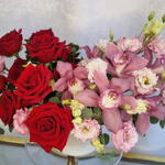 Red Roses Pink Orchids Basket Arrangement