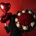 Ribbon - 8 pcs Teddy bear - 8 pcs paper - 8 pcs baloon - 3 pcs roses ecuador - 51 pcs