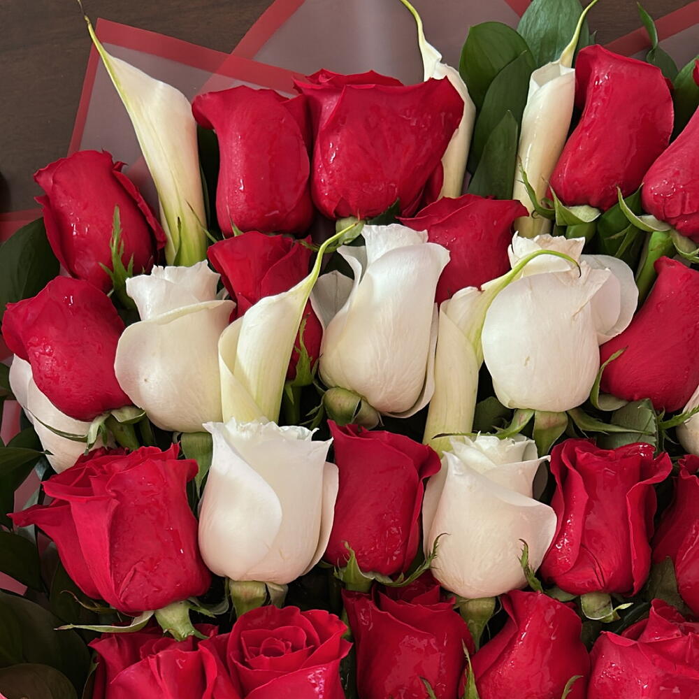 red white roses - 36 pcs