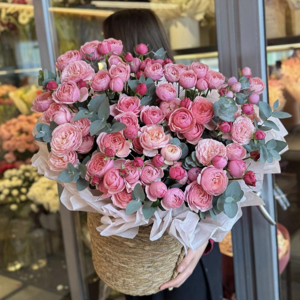 eucalyptus - 10 pcs basket - 1 pcs julietta rose - 30 pcs