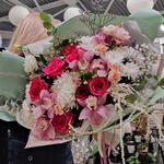 Eustoma - 2 pcs Eucalyptus - 3 pcs Pistacia - 1 pcs dianthus - 3 pcs cymbidium - 5 pcs gypsophila white - 1 pcs paber - 5 pcs lemonioum - 1 pcs alstroemeria pink - 3 pcs chrysanthemums - 4 pcs amaranthus stabilized - 1 pcs roosa ecuador - 7 pcs