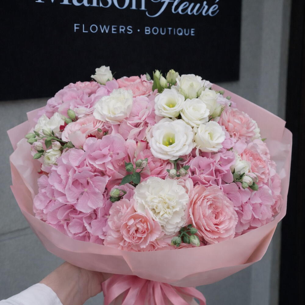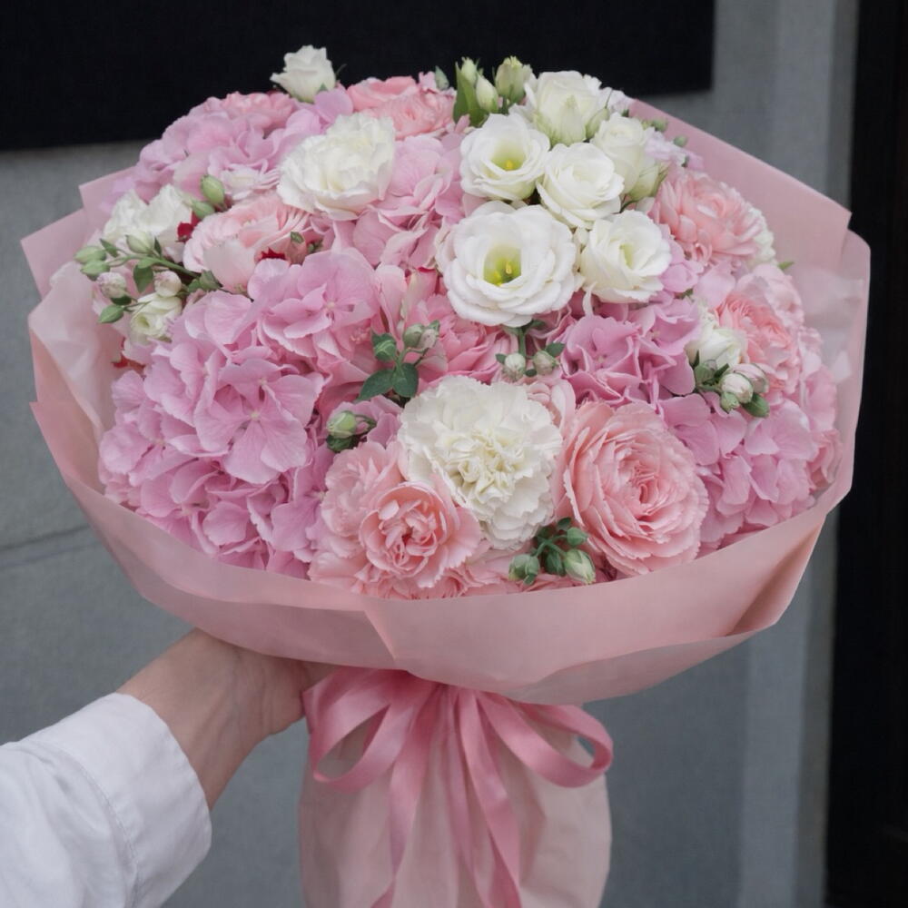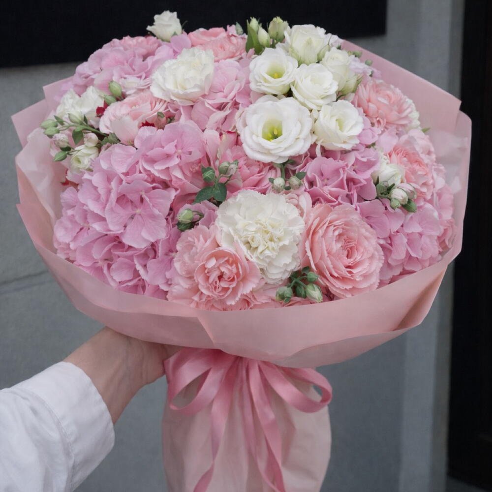 Eustoma - 8 pcs Nelken - 10 pcs Rosen - 5 pcs hydrangea - 5 pcs