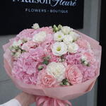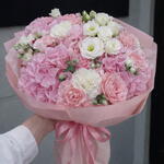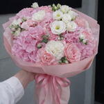 Let the Florists Specials enchant you with its unique elegance. This bouquet is composed of 8 stunning Eustomas, 10 vibrant Nelkens, 5 classic Rosen, and 5 exquisite Hortensia. A perfect blend to show appreciation, express love or just bring a smile. Experience the blissful amalgamation of natures best!