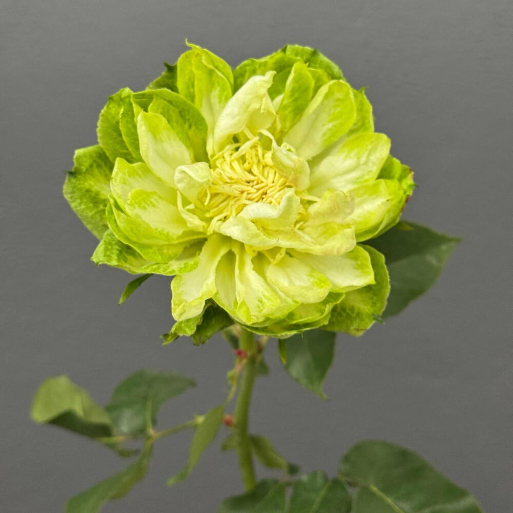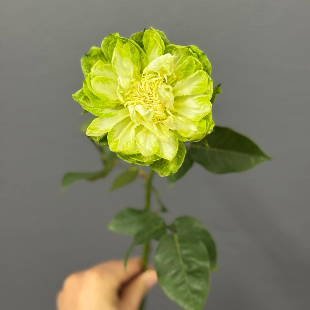 The Veggie Rose is a true exclusive for connoisseurs of extraordinary floral design. It shatters the stereotypes of what a classic rose should look like, trading traditional reds and pinks for a fresh, daring palette of electric lime.