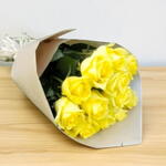 Ramo simples com Rosas do Equador Amarelas embrulhado em papel pardo e atado de ráfia.