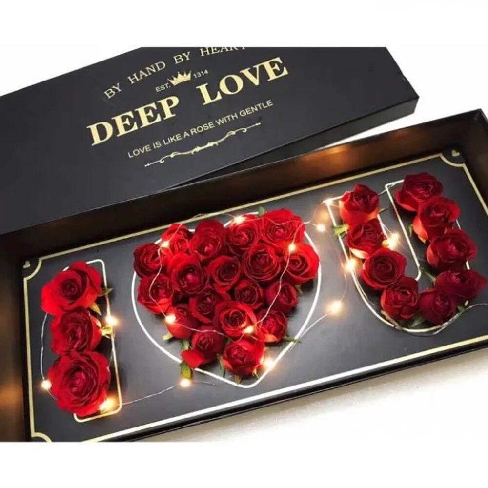 Surprise your loved one with this elegant red rose box, beautifully arranged with 29 fresh red roses in a luxurious 25x12 inch box. Soft LED lights are installed to add a magical glow, making this the perfect gift for romantic moments, celebrations, or heartfelt surprises. 🎁 What’s Included: 🌹 29 Premium Red Roses – Symbolizing deep love passion 💡 LED Lights Installed – Adds a romantic, glowing touch 📦 Luxury Box (25x12 inches) – Spacious and stunning presentation 💌 Free Greeting Card (Optional) – Add your personal message Perfect For: ❤️ Valentine’s Day | 💍 Proposals | 🎂 Birthdays | 🎉 Anniversaries | 🎁 Surprise Gifts
