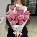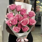 Classic mono bouquet of bright pink candy roses🤍