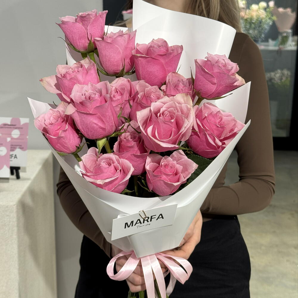 Classic mono bouquet of bright pink candy roses🤍