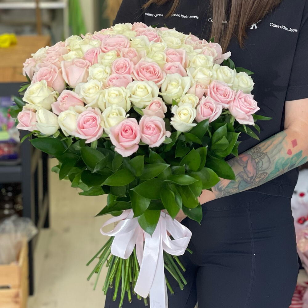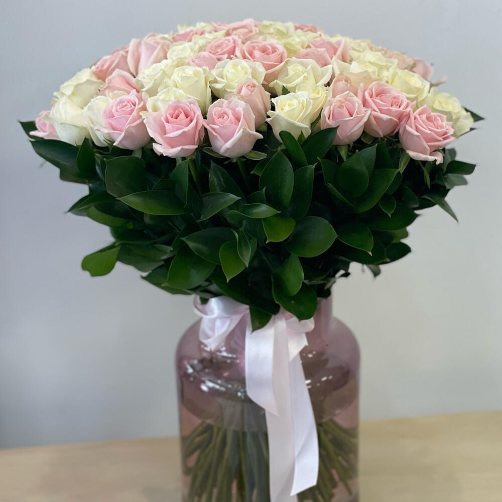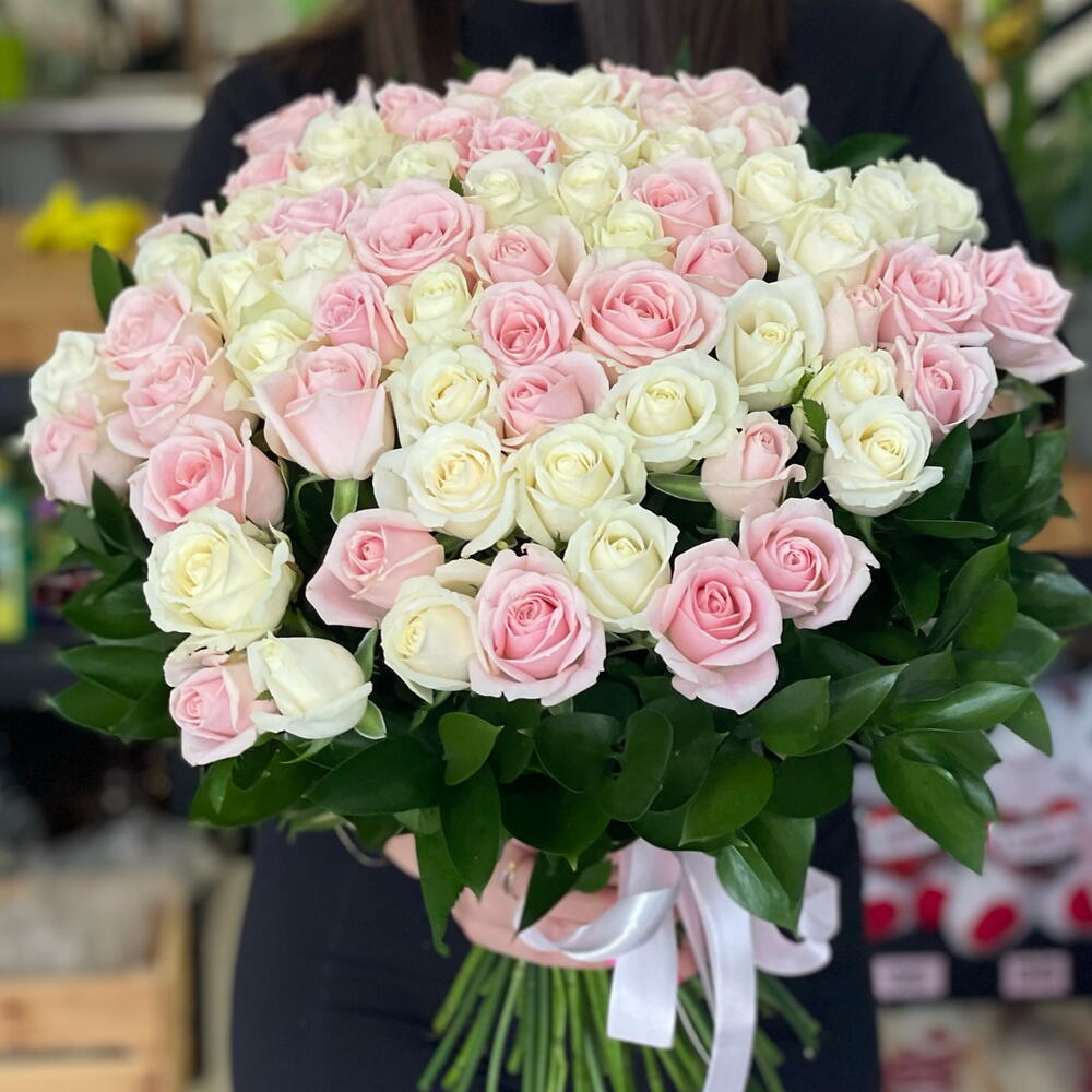 rose - 101 pcs ruscus israel - 30 pcs