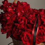 Ribbon - 4 pcs Basket - 1 pcs red roses from ecuador 60cm - 51 pcs