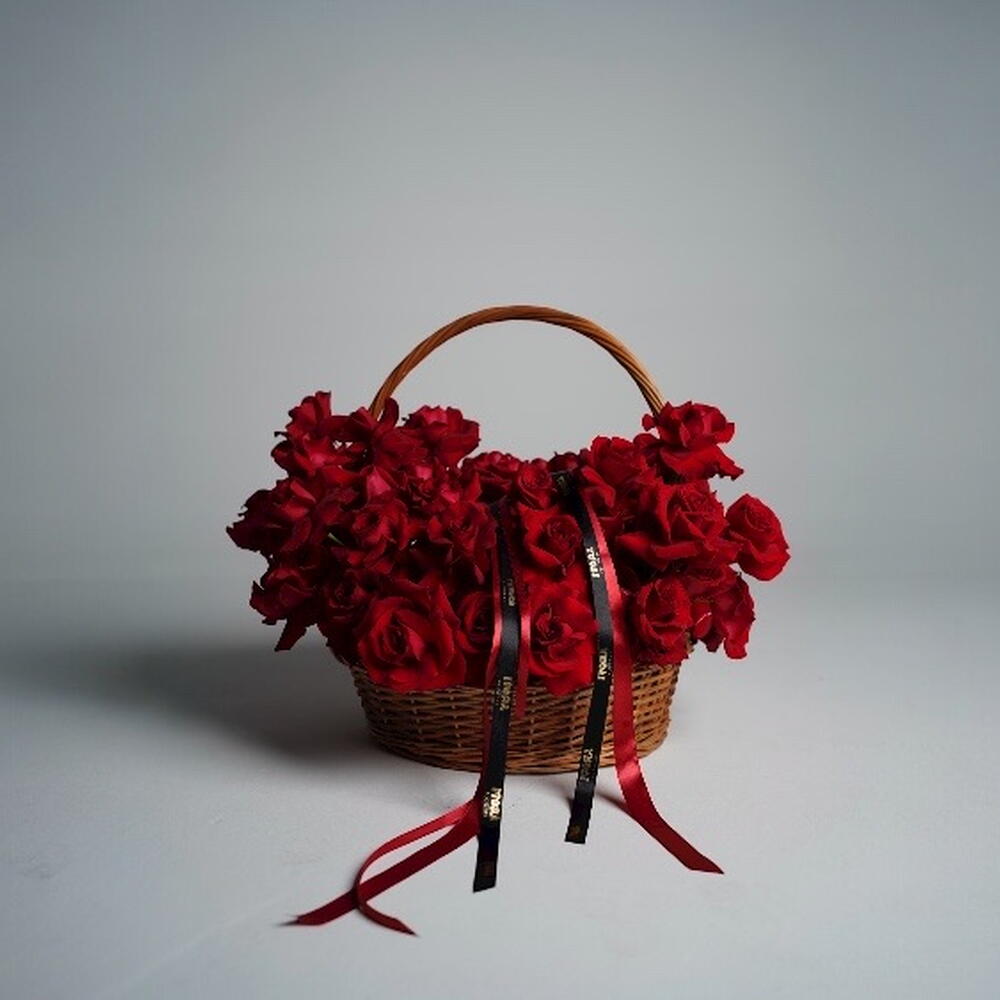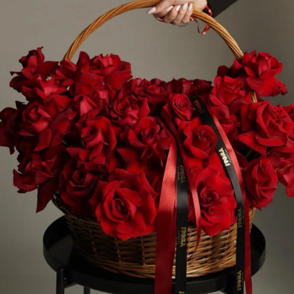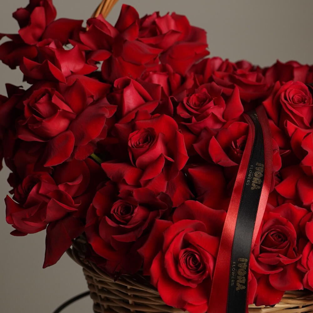 Ribbon - 4 pcs Basket - 1 pcs red roses from ecuador 60cm - 51 pcs