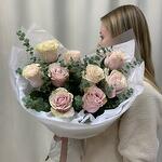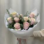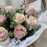 Roses pink with eucalyptus