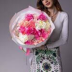 white hydrangea - 3 pcs pink hydrangea - 2 pcs dianthuses pink - 10 pcs pink spray roses - 6 pcs pink french roses - 10 pcs pink rice - 4 pcs