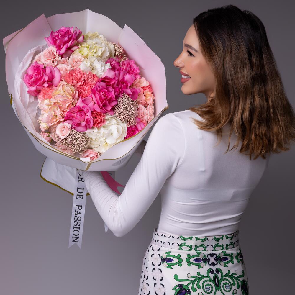 Rosy Morning L Size (Pink French roses, spray roses, hydrangeas , rice)