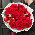 Eucalyptus - 3 pcs Tulips - 18 pcs Ecuadorian rose - 11 pcs packaging - 1 pcs