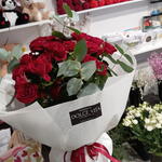 Bouquet of red Goląskowa rose with eucalyptus