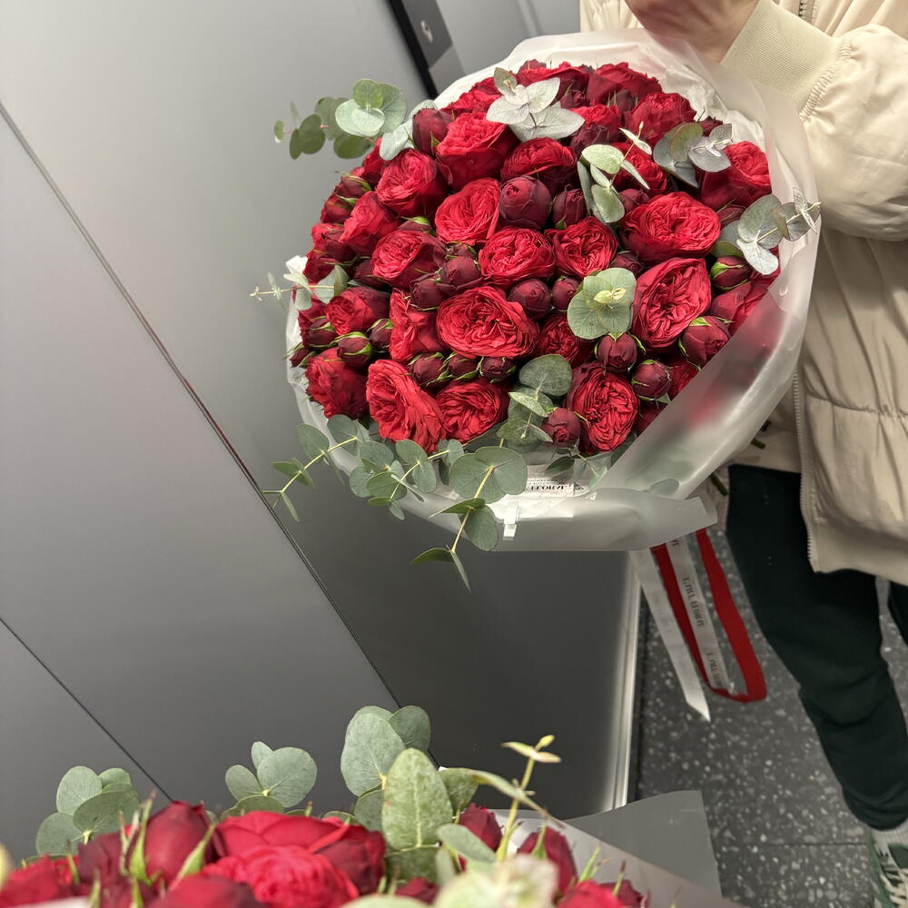 eucalyptus - 7 pcs peony rose - 27 pcs