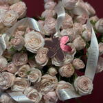 Romantic heart-shaped bouquet of columnar (bushy) roses in a subtle, powdery shade 🌸 Each stem creates the effect of a full, soft composition — the bouquet looks like a velvety cloud of roses. Delicate, elegant, yet striking in its form. It's the perfect choice for Valentine's Day, an anniversary, an engagement, or as a special gesture of love and gratitude. The bouquet is made fresh in our Viki Flora studio from the highest-quality premium flowers, with attention to detail and an aesthetic finish.