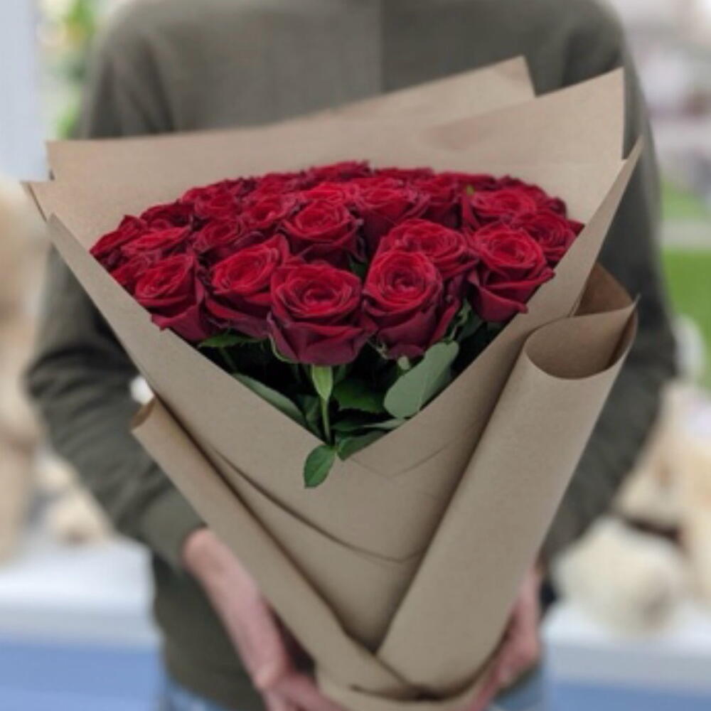 Satin ribbon - 2 pcs Kraft natural - 2 pcs роза эквадор(70 см) - 25 pcs