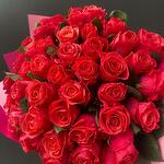 Pink red Ecuador. Gigantic head. When this rose opens, you will be pleasantly surprised. If the customer does not respond to messages or the phone number is not Polish, an hour before delivery, the store may independently change: the shade of the flowers or the composition may be changed, but the styling will be preserved.