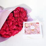• Fresh, premium roses beautifully arranged together with delicate gourmet macarons • Lovely combination of natural beauty and sweet indulgence — ideal for a refined gift • Perfect for birthdays, anniversaries, romantic gestures, thank-you surprises, or any special celebration • Gift-ready presentation — no extra wrapping needed • A balanced mix of floral elegance and sweet sophistication that delights sight, scent, and taste • Can be given as a standalone luxury gift or combined with other items from Aliart Sweet — balloons, cakes, chocolate-covered strawberries etc. for a full gift package • Next-day delivery available in New York — convenient for last-minute surprises