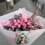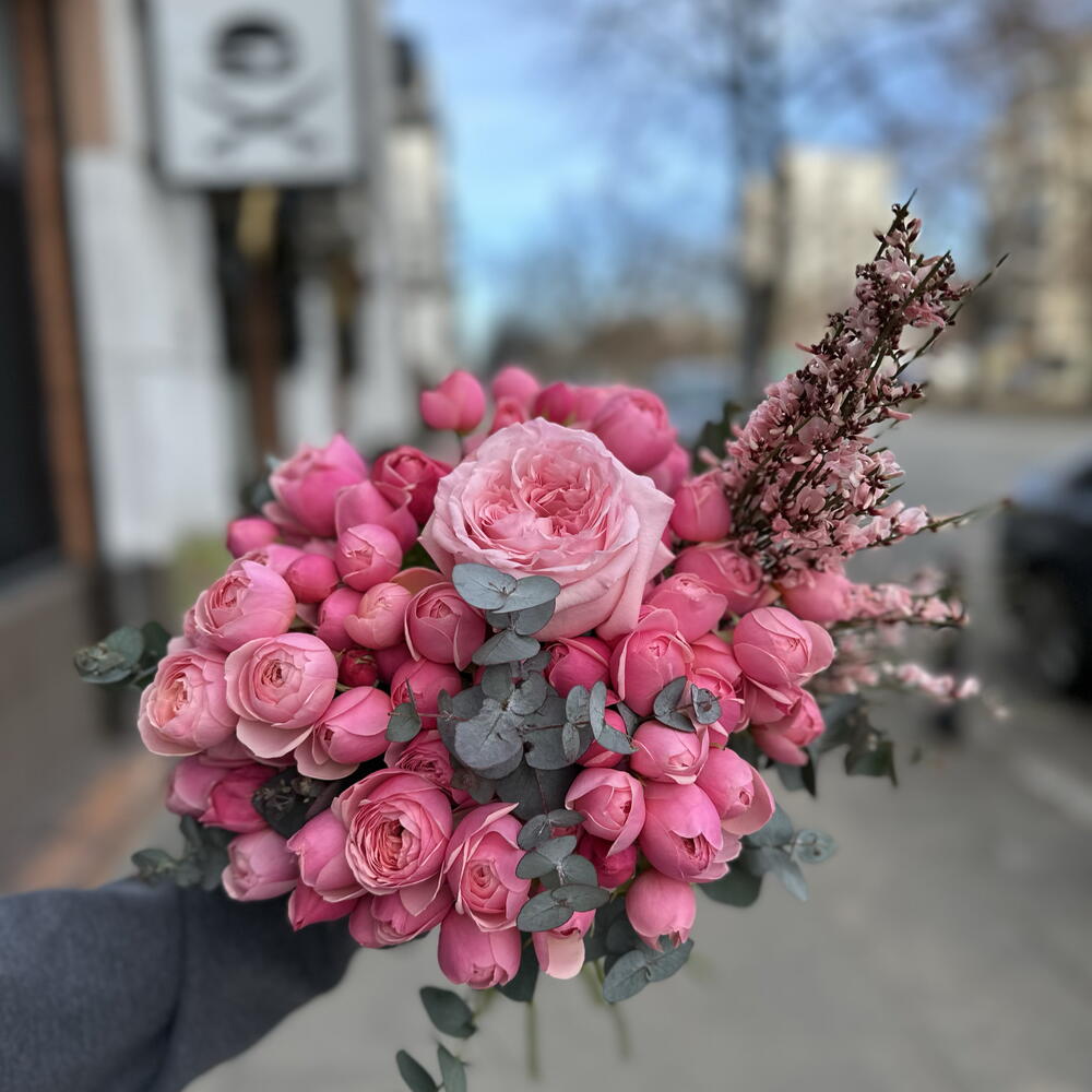 Eucalyptus - 10 pcs Pink O'Hara rose - 1 pcs genista pink - 1 pcs silva pink bush rose - 20 pcs